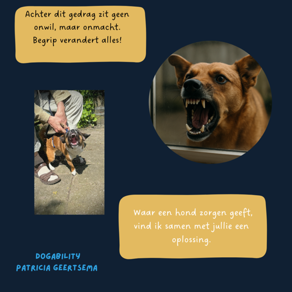 Soms gebeurt het ineens. Een hond die uitvalt naar een andere hond achter een hek of aan de lijn staat te grommen โ en plotseling slaat diezelfde hond om naar zijn eigen eigenaar. Hij bijt in de lijn. In de arm. In het been. Hij gromt, blaft, springt, hapt. Niet omdat hij โvalsโ is. Niet omdat hij โde baas wil zijnโ. Maar omdat zijn frustratie zo hoog oploopt, dat hij geen uitweg meer ziet. Dat noemen we redirectie-agressie.